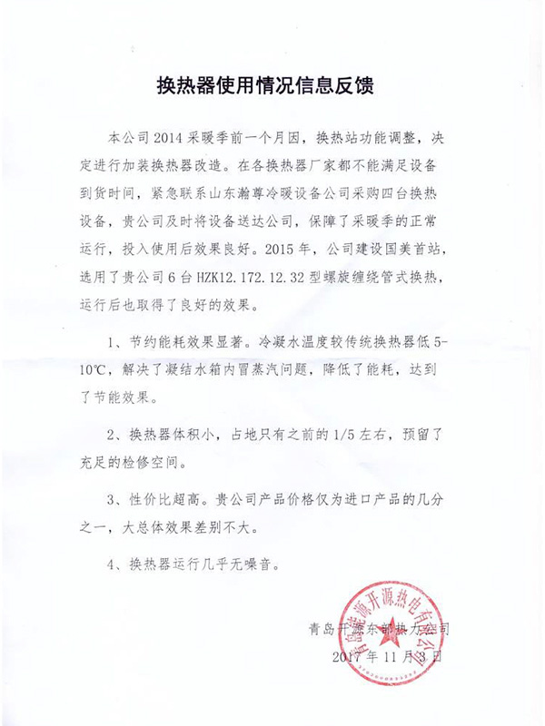 • 山東瀚尊冷暖設(shè)備有限公司坐落在美麗的齊國(guó)古都---淄博,是一家以換熱(冷凝)產(chǎn)品研發(fā)、生產(chǎn)、營(yíng)銷為一體的企業(yè);自2008年以來(lái),通過(guò)與中外知名熱力設(shè)備制造商合作以及自主探索和創(chuàng)新,于2010年成功研制生產(chǎn)出了公司第一臺(tái)螺旋纏繞管式換熱器;同時(shí),公司依托自身強(qiáng)大的技術(shù)力量和研發(fā)能力,于2016年成功研制生產(chǎn)無(wú)死角無(wú)菌級(jí)雙管板式換熱器,近年來(lái),公司努力走在中國(guó)換熱器行業(yè)的前列,致力于創(chuàng)造民族品牌,為用戶提供專業(yè)技術(shù)支持與服務(wù)......