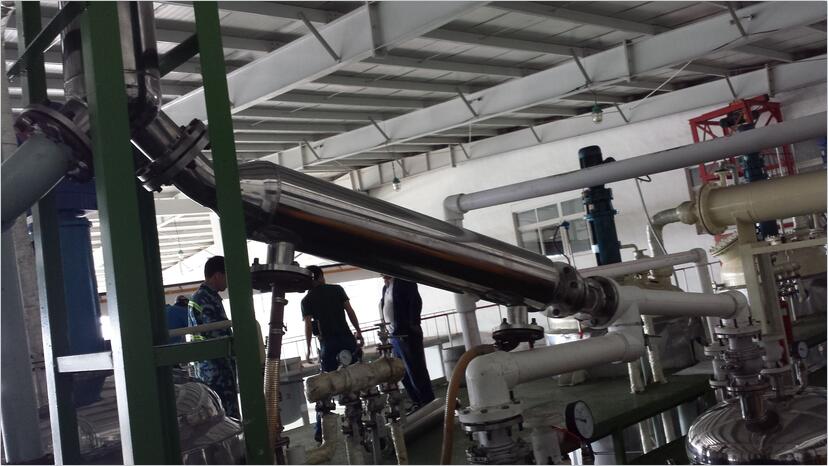 a 瀚尊螺旋纏繞管式換熱器端面小(可達到2℃),在低沸點物料的冷凝中用普通循環水代替了冷凍鹽水,節省大量的制冷費用。
